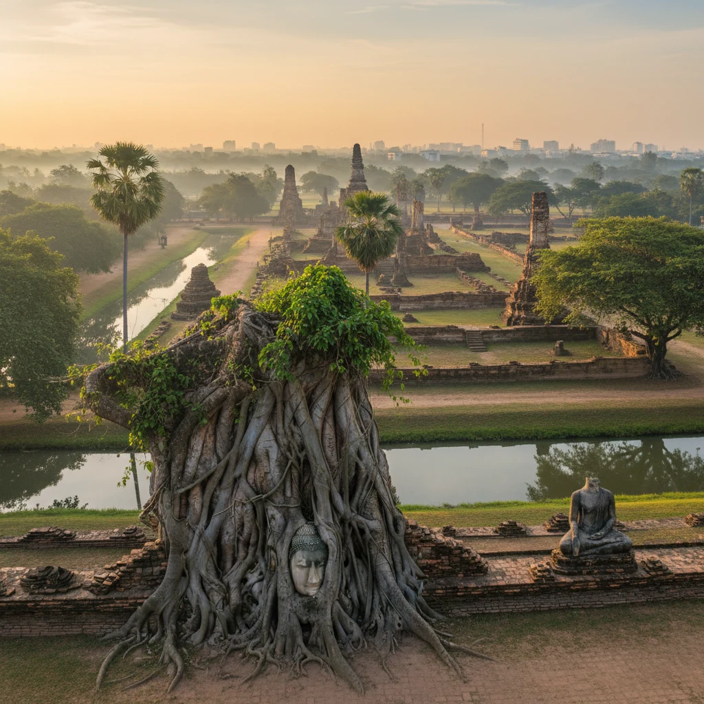 Парк Аюттхая славится тем, что это огромный комплекс руин и храмов бывшей столицы Сиама, где в одном месте можно увидеть масштаб «золотого века» тайской истории. Его узнаваемый образ — кирпичные праны и чеди, остатки королевских храмов и монастырей, а также планировка города на острове, окружённом реками и каналами, из-за чего прогулка ощущается как путешествие по древней водной столице. Многие едут сюда ради атмосферы старых храмовых дворов на рассвете и закате и ради самых известных символов Аюттхаи вроде головы Будды в корнях дерева в Ват Махатхат и эффектных силуэтов Ват Чайваттханарам на берегу. Кроме того, Аюттхая известна как объект всемирного наследия ЮНЕСКО и как одно из лучших мест в Таиланде, чтобы понять историю страны не по музею, а “вживую”, среди настоящих памятников.