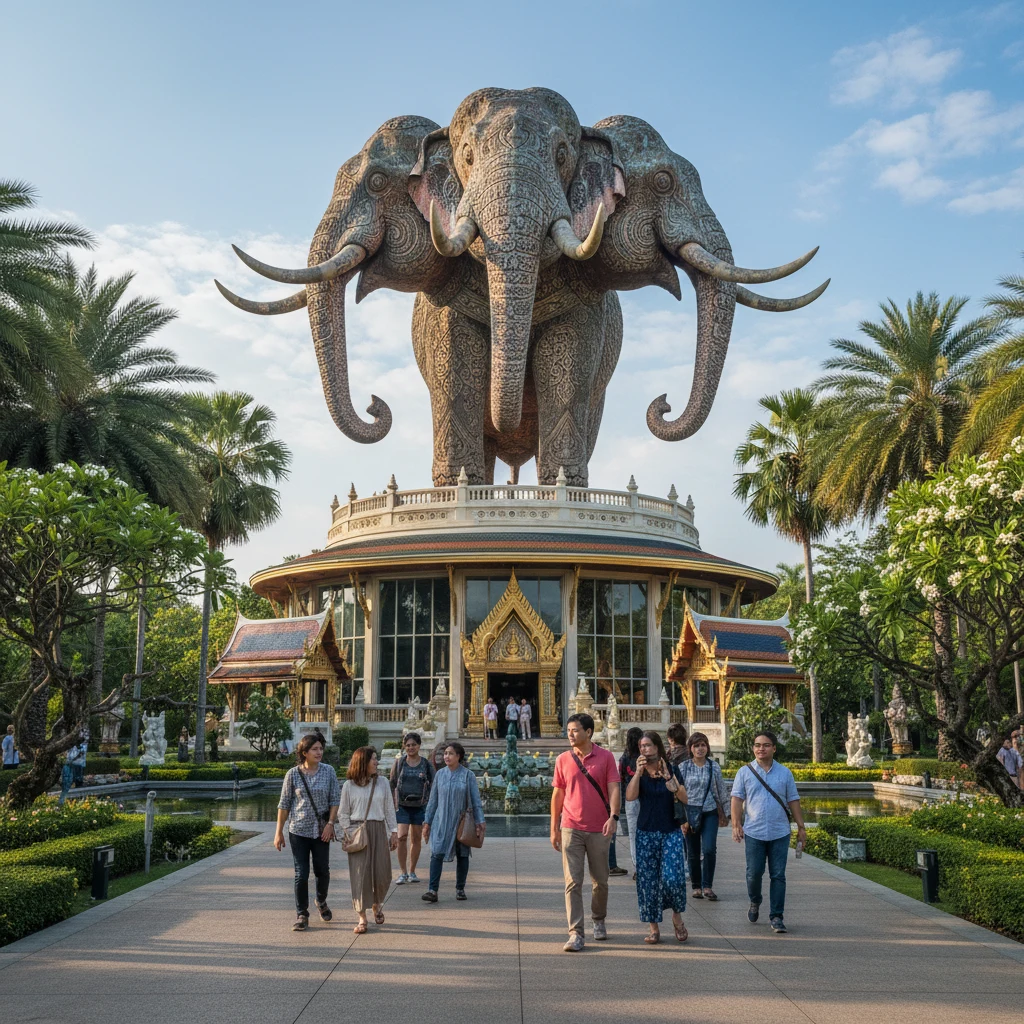 Здание выполнено в виде гигантской фигуры трехглавого слона, а внутри залов хранятся уникальные артефакты, включая древние статуи и редкие предметы искусства.