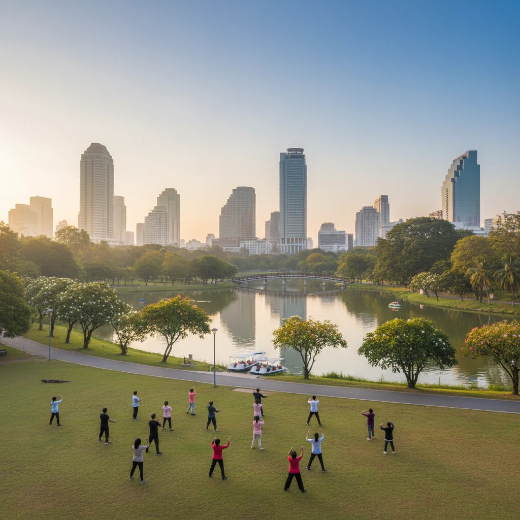 Парк Лумпини подходит для прогулок, бега, отдыха на траве и наблюдения за природой, но для купания в Бангкоке лучше выбирать бассейны или поездки к морю за пределы города.