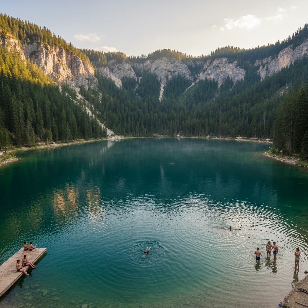 Если гулять медленно, останавливаться у каждого красивого места, смотреть на воду, отдыхать в тени и не спешить, прогулка вокруг озера может занять около 20–30 минут. Многие также совмещают её с купанием, поэтому на практике время получается больше: люди обычно проводят у озера 40–60 минут или даже дольше, потому что хочется поплавать, посидеть на берегу и просто насладиться атмосферой.