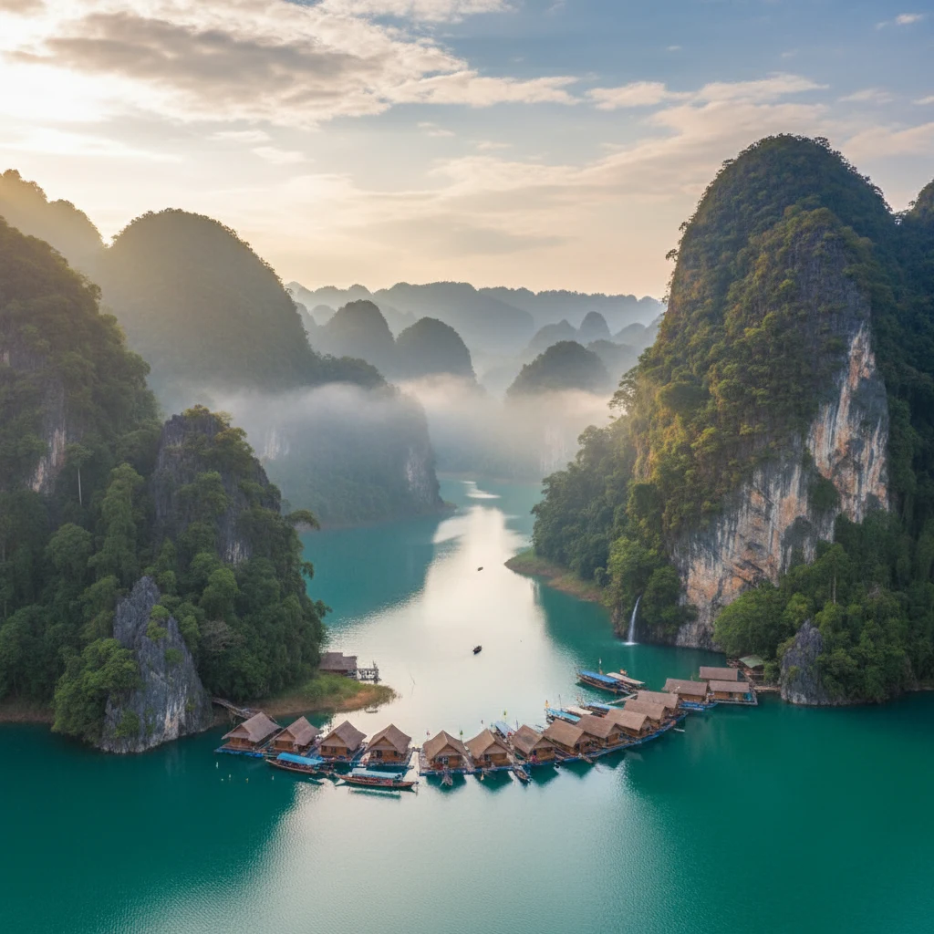 Озеро Чео-Лан — искусственный водоем, созданный в 1982 году по приказу короля Таиланда для обеспечения запасов пресной воды. Его появление стало результатом строительства огромной дамбы Rachaphrapha Dam. До затопления, территория, ныне занимаемая озером, представляла собой густые леса, служившие домом для общин китайских беженцев. Данные поселения были переселены, а их дома опустошены перед началом заполнения долины водой. Этот масштабный проект кардинально изменил ландшафт региона, превратив его в живописное озеро, окруженное впечатляющими скалами.