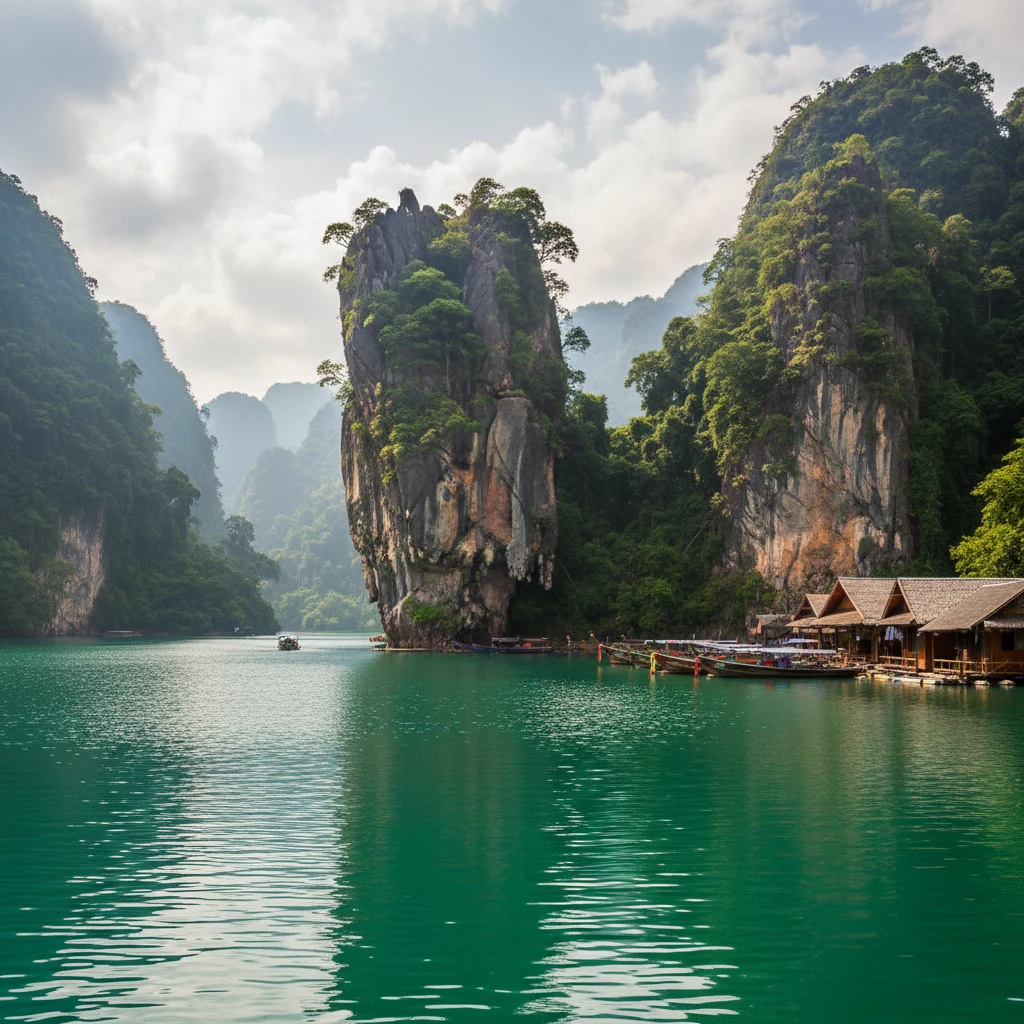 Озеро Чео Лан — рукотворное изумрудное чудо Таиланда, обязанное своим существованием дамбе Раджапрабха, сооружённой в 1982 году. Его уникальность заключается в затопленной долине с живописными карстовыми скалами, возвышающимися из воды, и величественными «затопленными лесами», чьи стволы проглядывают сквозь бирюзовую гладь. Это место, прозванное «Гуйлинь Таиланда», предлагает полное погружение в природу с возможностью проживания в уединённых плавучих домах (рафтхаусах), способствуя настоящему цифровому детоксу.